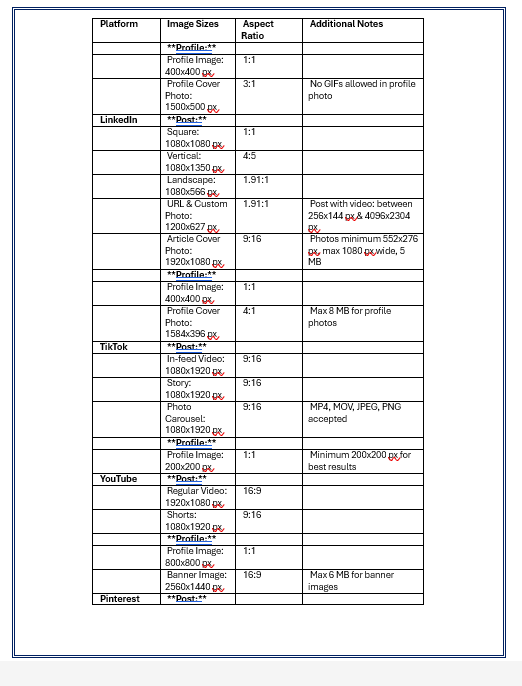 In essence, having a cheat sheet with the correct image sizes for each platform ensures that your visual content is presented effectively, professionally, and consistently, ultimately contributing to your overall social media success.